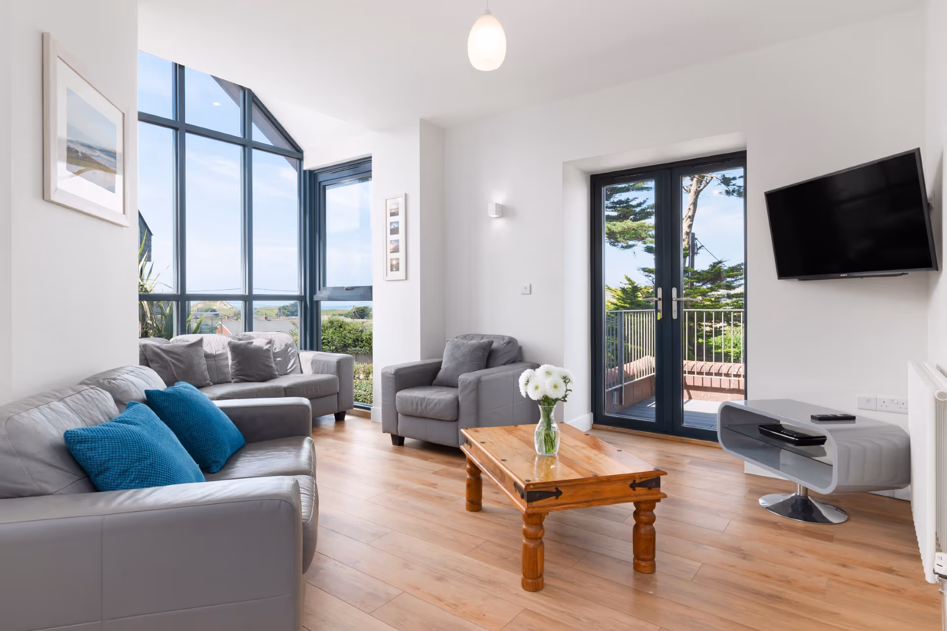 Sunset Beach comfortably accommodates up to eight in two double and two twin bedrooms. There are also three bathrooms, two of which are en-suites. Direct access from the ground floor leads to a decked terrace and enclosed garden with a summer house beyond.